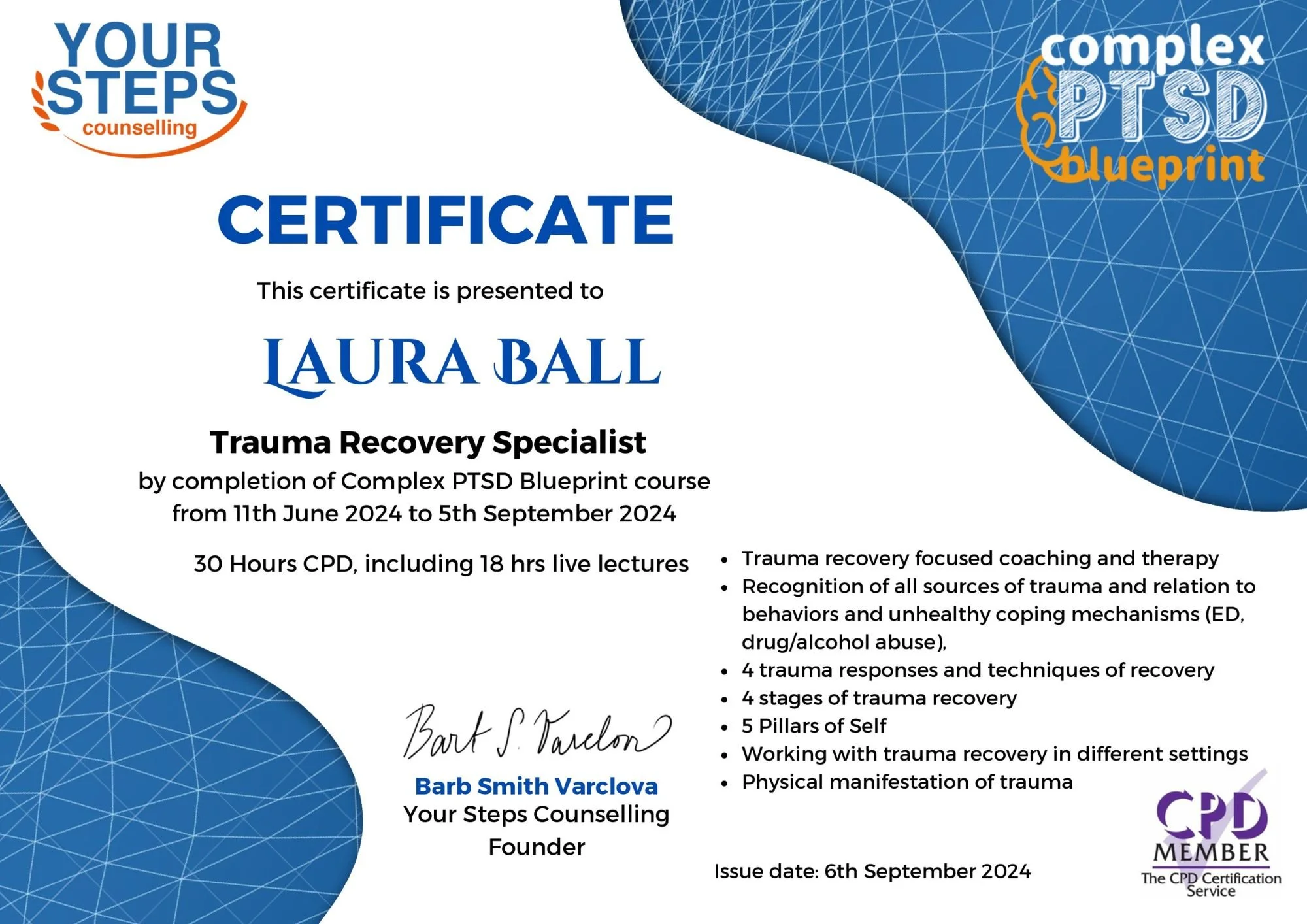 Then, I discovered the power of the subconscious mind and Rapid Transformational Therapy (RTT). RTT provided me with profound understanding and brought about fast, lasting transformation. Feeling empowered and hopeful, I decided to retrain in RTT. I have also successfully completed further training and certification in Complex PTSD, to complement my knowledge and enable me to effectively respond to whatever arises and meet individual needs.